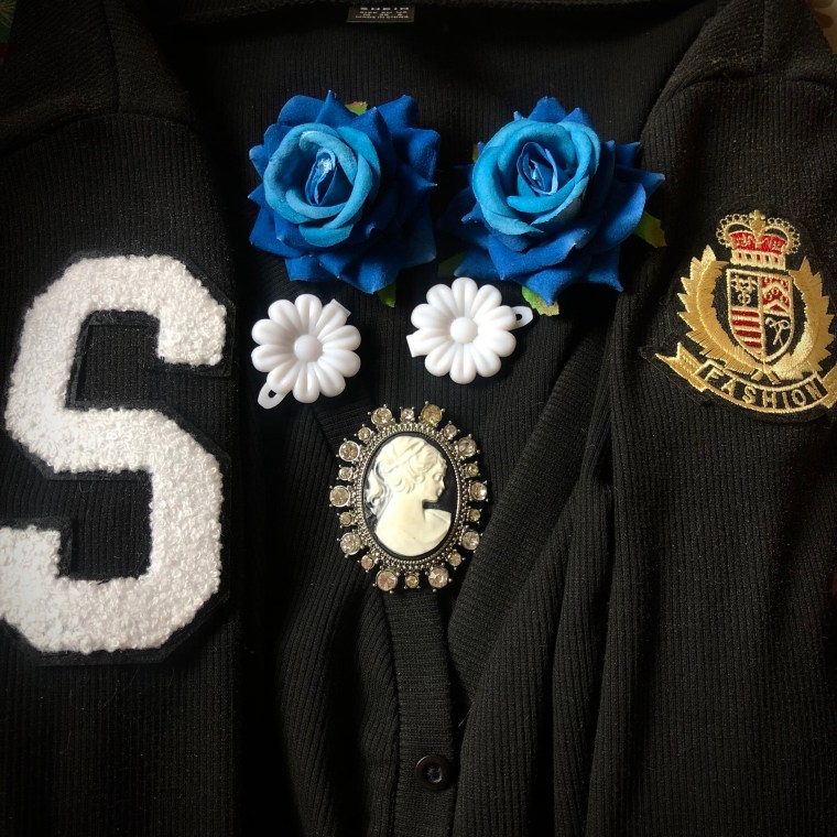 Rose clips: SHEIN / Flower clips: Amazon / Sweater: SHEIN (I added the patches!) / Cameo: Grandmother’s