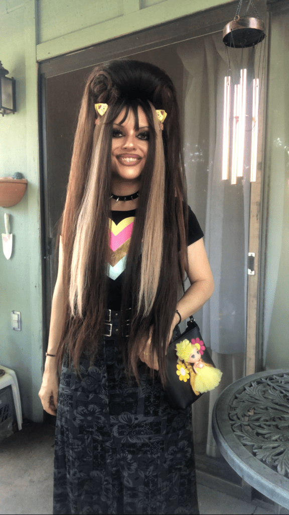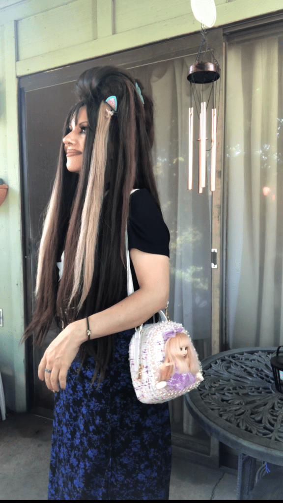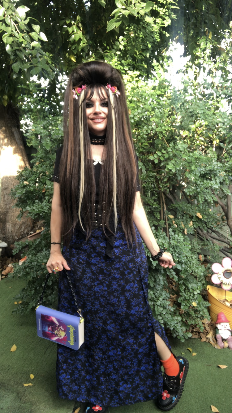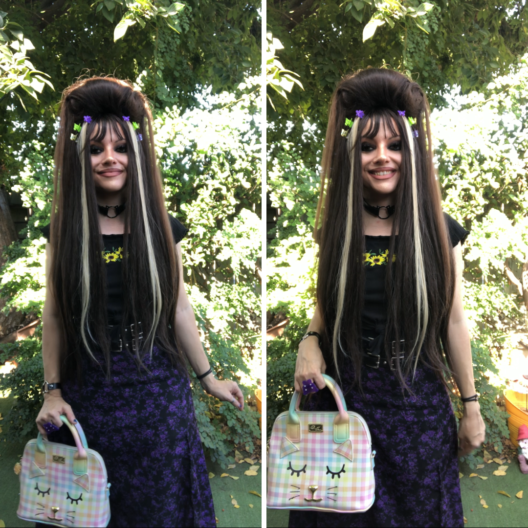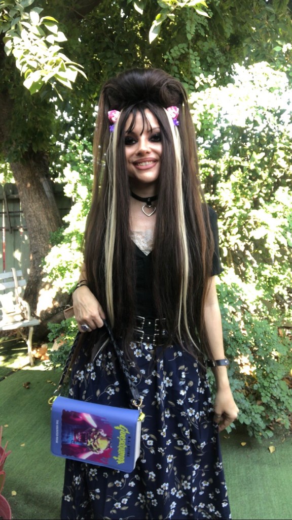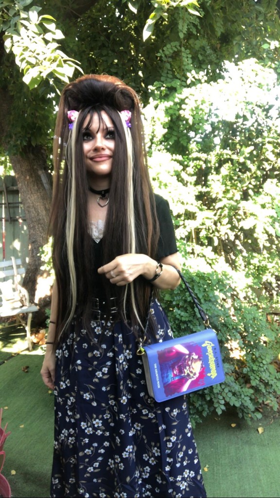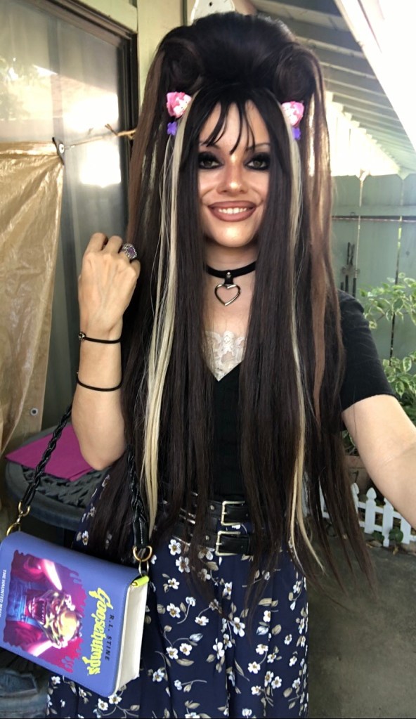 For my outfit, I switched out the strap of the purse to a shorter one, because I liked the look of it. Paired with pink and purple accessories, I thought the ensemble perfectly exuded the childhood nostalgia I feel for Goosebumps!