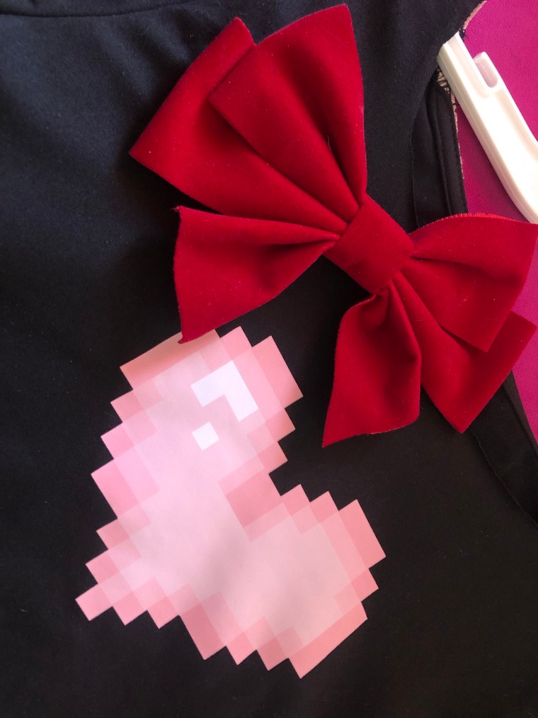 Ahhhh, this pixelated heart gives me all the feelings!! It has that computerized look, and paired with a vintage-looking red velvet bow, it’s a fun mashup of old meets new.
