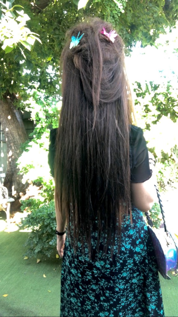 Lastly, I felt like the colors of the butterfly clips I wore in the back of my hair matched the colors of the album cover, and my green floral skirt also meshed well with the color scheme.